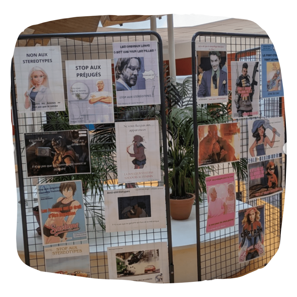 Au programme selon les formats : présentation de la thématique et des enjeux, analyse d’images, questions/réponses, découverte d’œuvres allant à l’encontre des stéréotypes (constitution d’une sélection d’ouvrages au CDI), création d’affiches de sensibilisation…