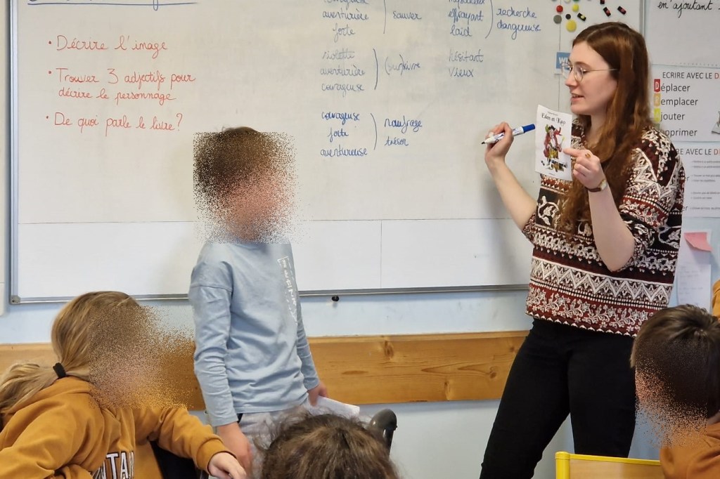 En école primaire, l’atelier est centré sur les albums et une approche ludique pour promouvoir l’égalité filles-garçons.