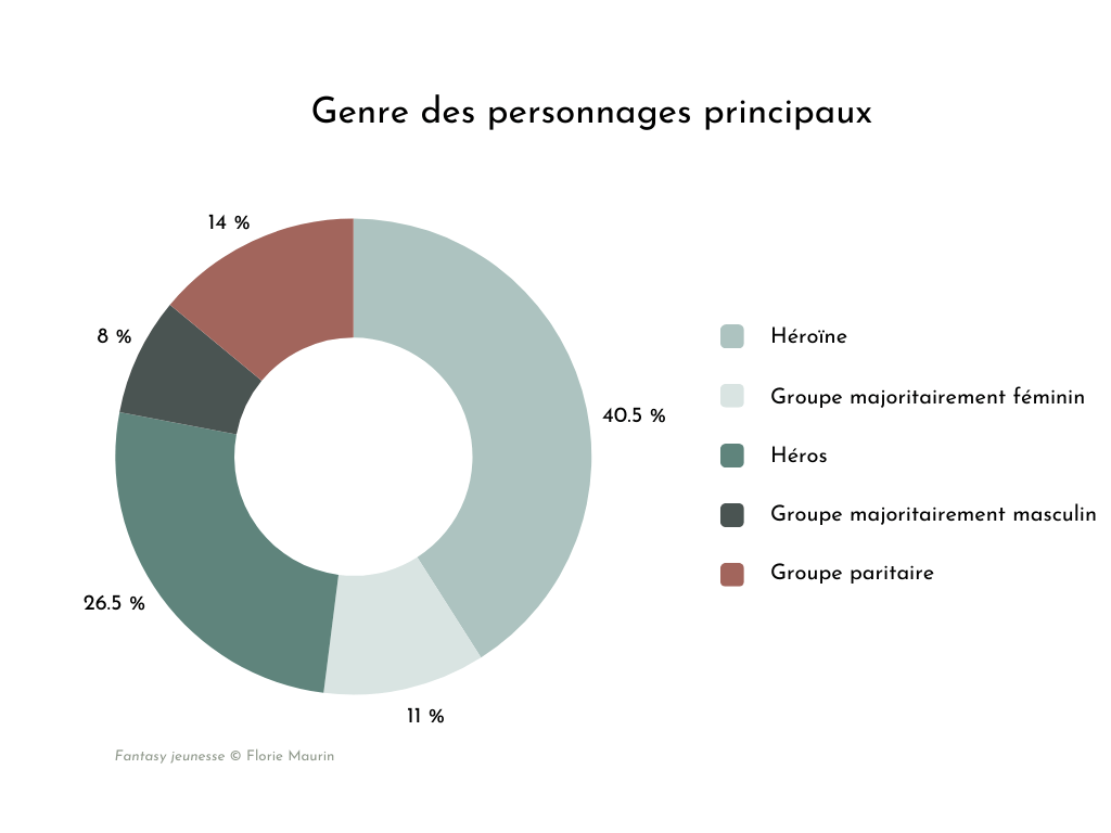 Deuxièmement, l’année étudiée pourrait accentuer ce phénomène : nous pourrions supposer que la production ultracontemporaine, post-#MeToo, est davantage marquée par une préoccupation des enjeux liés aux représentations féminines. Une comparaison avec la production de fantasy jeunesse d’autres années pourrait permettre de valider ou d’invalider cette hypothèse.