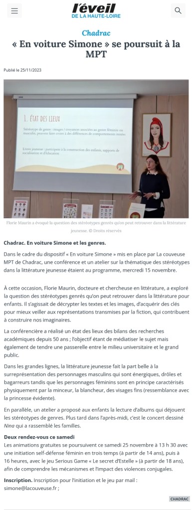 Les héroïnes de la série TV Once Upon a TimeInterview par les élèves du collège de la DurolleTable-ronde au festival L’Ouest HurlantInterview : les figures féminines dans les romans de Pierre Bottero