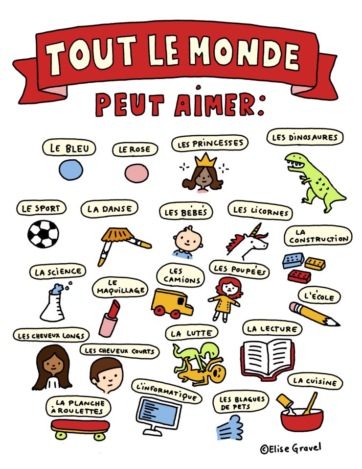 Découvrez le travail d’Elise Gravel, une auteure et illustratrice qui travaille notamment sur l’égalité. Des affiches sont à télécharger gratuitement pour une utilisation non commerciale.